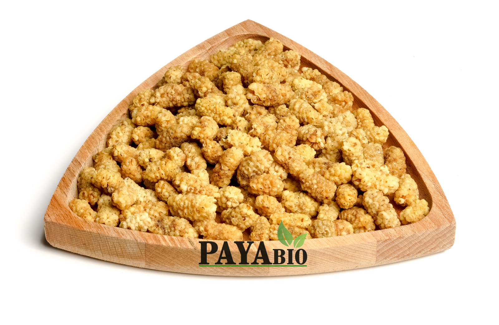 They provide unusually high levels of protein and iron for a fruit, and are also a rich source of vitamin C, fiber, calcium, and antioxidants. All-natural dried white mulberries are delicious as a snack, or mixed in smoothies.